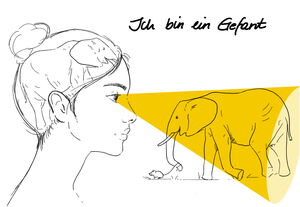 Danach bin ich nicht selten bestrebt, mein schnelles Urteil vor mir selbst zu begründen: „Ich mag Elefanten, die sind immer stark, genau wie ich“ oder „Ich mag Elefanten nicht, weil die dicke Beine haben, genau wie ich“. Meist unbemerkt, lege ich damit in meinem Kopf eine emotional geladene Schublade mit der Überschrift "Elefant" an, die ich mit meiner Identität verbinde und die mich innerlich eng macht.